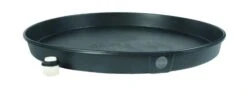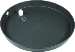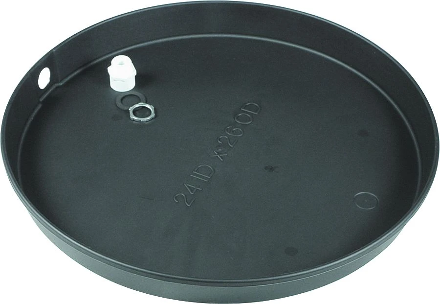 For electric water heaters only. Heavy duty polypropylene. Dual size 1 in to 1.5 in PVC drain fitting with gaskets included. Sides are 2.5 in deep.