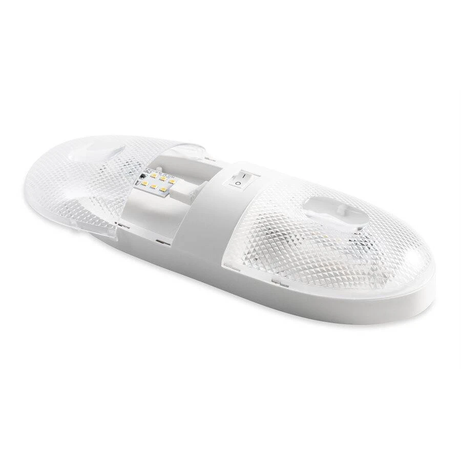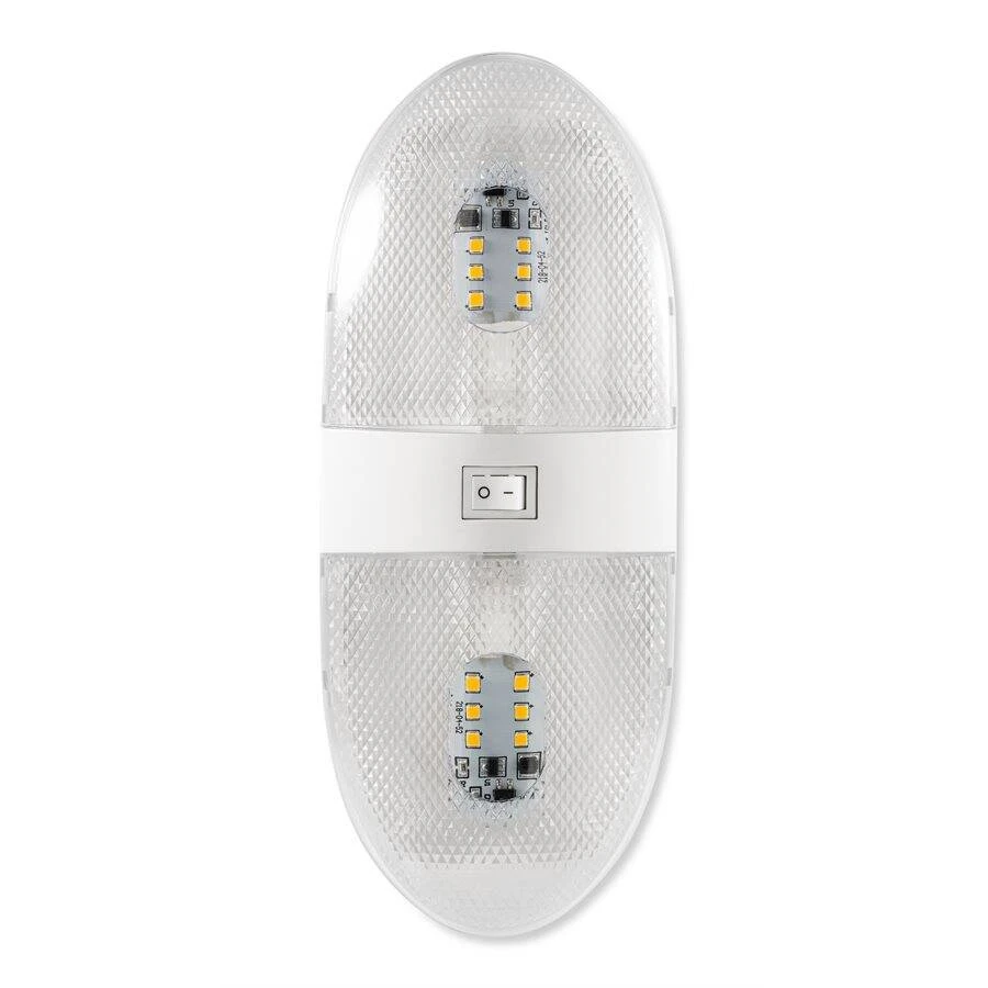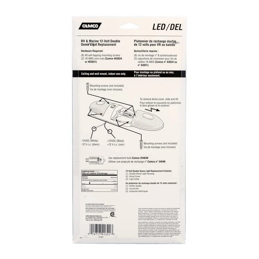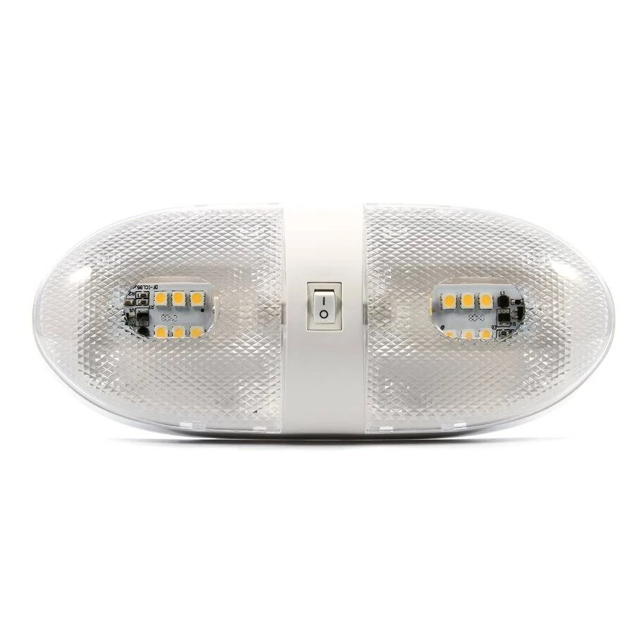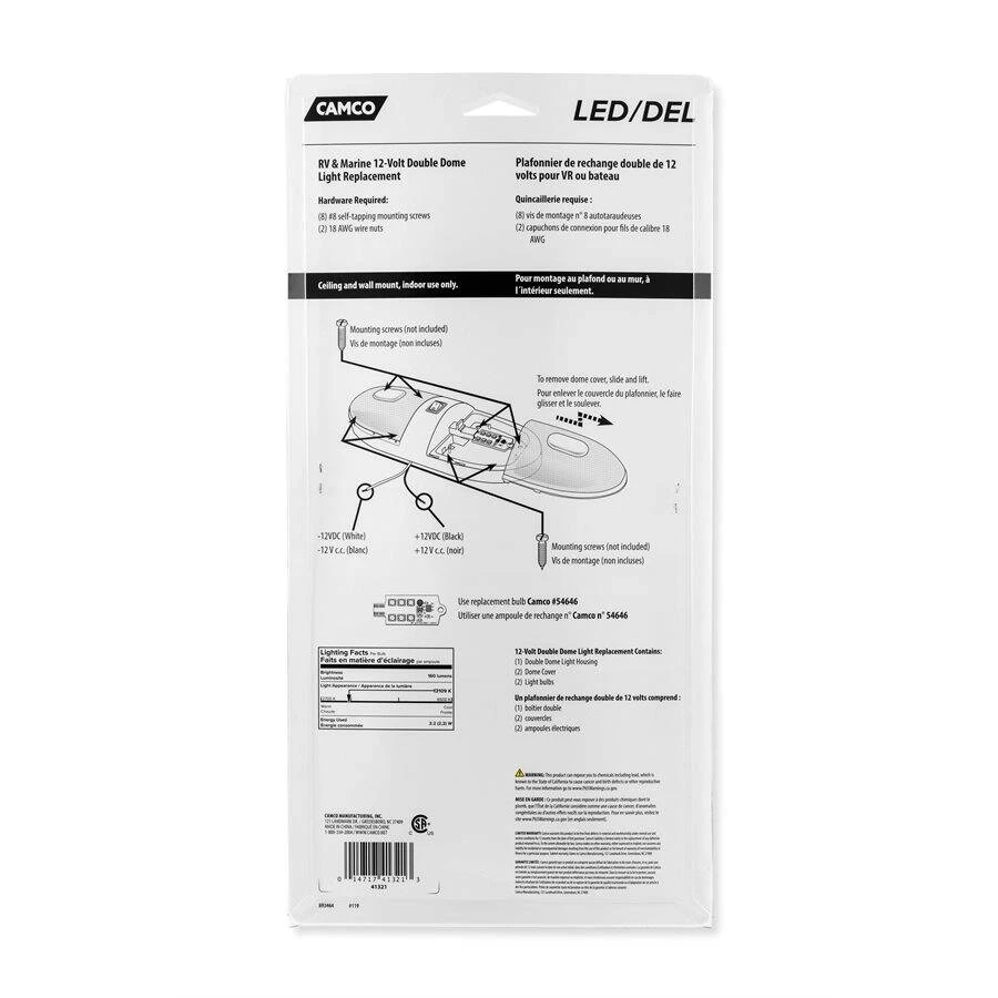 The LED Double Dome Light Replacement Kit is 320 lumens total, or 160 lumens per bulb. The 12-Volt Light Kit comes with 1 Double Dome Light Housing, 2 Dome Covers and 2 Light Bulbs. Great for replacing the dome light in your marine or recreational vehicle. Light is warm white.