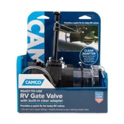The Camco Ready to Use Gate Valve with Built-In Clear Adapter is a backup and quick fix for leaky valves. The clear adapter attaches to your RV’s sewer outlets and allows you to see and anticipate what’s inside your RV’s drain pipe so there aren’t any surprises. The gate valve features (4) bayonet prongs for easy hookup and fits all 3-inch sewer fittings.
