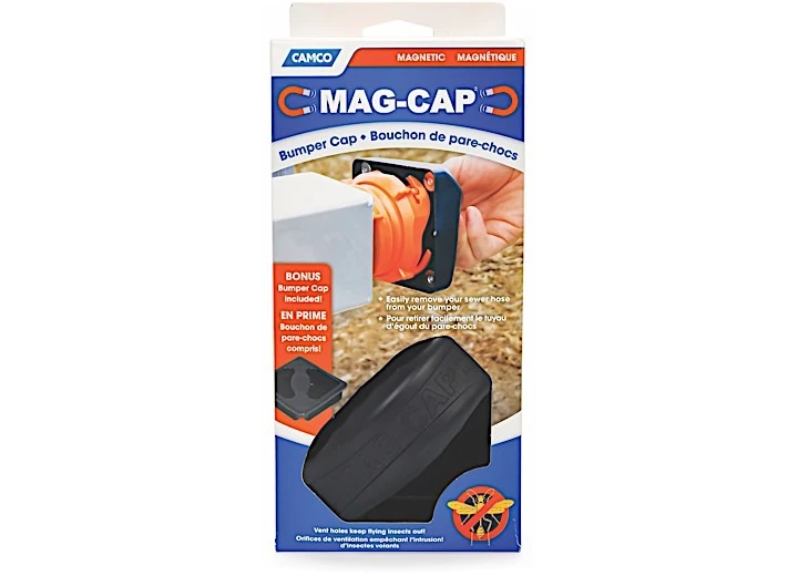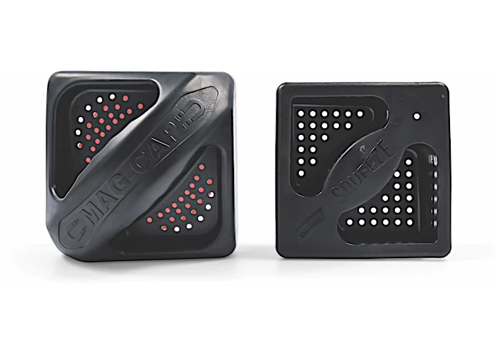 Sewer Hose Storage Carrier Cap; Use With Metal 4 Inch Square Sewer Hose Bumper; Black; Magnetic Cap With Bayonet Lugs For Attaching Sewer Hose; Polyethylene; With Vent Holes; Single; Retail Package