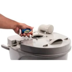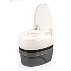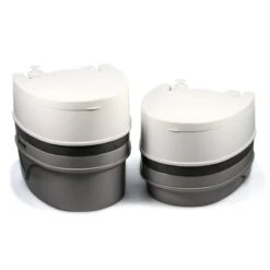The Camco Camping Toilet is a durable, comfortable option for camping, hunting, road trips and boat trips. The top features a larger seat size than most competitors, with an increased bowl size. The fresh water holding tank utilizes a pump flush action to effectively rinse the bowl of the toilet. The 5.3 gallon detachable holding tank seals firmly to prevent escaping leaks and odors. The interior of the holding tank has a slick surface to make waste removal easier and more efficient. Remove the flush tank one handed by toggling a single locking latch. The latch is spring-loaded for automatic re-attachment. The Camco Camping Toilet features a lid that can be latched closed for easier transport or completely removed for cleaning. It is made of durable ABS resin and will seal in unpleasant odors for an overall better camping toilet experience. Measures 16.4″ H x 16.25″ W x 18.4″ D and weighs approximately 11.7 lb. when empty and 56 gallons when full. The outside width of the seat measures 12.6″ the inside width is 8.4″. Features a 4-gallon flush capacity. Patented.