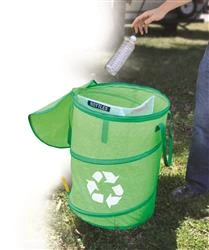 Pops up to 24″ high and collapses to 2.5″ for easy storage when not is use. Includes three convenient compartments for bottles, aluminum cans and paper. Features padded handles, a durable liner, zipper lid and storage bag.