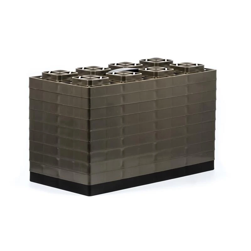 - 10 interlocking blocks stack to the desired height for customizable leveling
