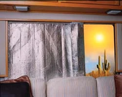Window Shade; RV Window; Manual; 50 Inch Width x 30 Inch Height; Reflective Surface; Hook and Loop Mounting