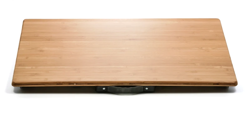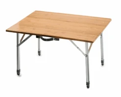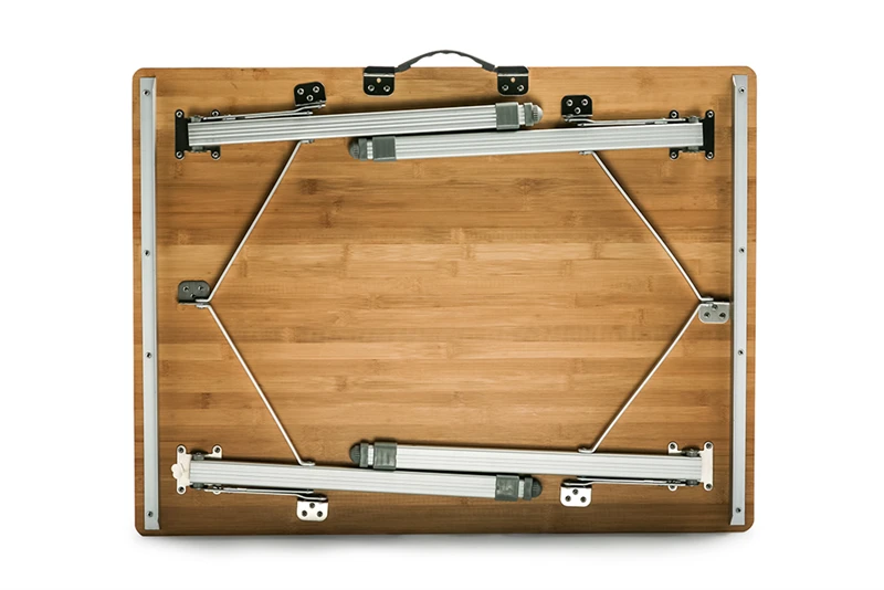 The Folding Bamboo Table Top is great for picnicking, tailgates and camping. It features an attractive natural bamboo top for an “at home” feel anywhere you go. The aluminum legs fold flat for transportation, and telescope out when in use. Table folds and unfolds in just seconds. Each leg securely clicks into place when fully extended. The carrying handle makes it easy to transport and the overall design is lightweight for added portability.