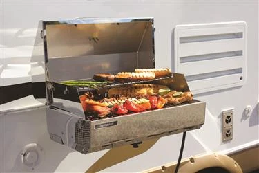 The Camco Olympian 6500 Stainless-Steel Portable Gas Grill is designed for RV and outdoor uses and is easy to transport. This high quality lightweight 3S04 stainless-steel barbecue has a large cooking area of 316 square inches. The stainless-steel burner heats up fast and resists rust. A Lift-and-Clean liner provides easy cleaning. The grill is ready to use straight from the box, only assembly required is the mount to hang the grill on the RV mounting rail. It includes a quick-connect hose and valve to use the low-pressure propane supply on an RV or trailer that has a built-in low pressure quick-connect propane connection. The Camco Quick-Connect x ACME Propane Hose (57629) or Quick-Connect x Throwaway Propane Hose (57628) must be purchased separately to use the grill with a 20 lb. propane cylinder or 1 lb. throwaway propane cylinder. Weighs 21 lb.