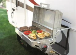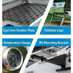 - Connections: Connects to low pressure propane supply on RV; Easy to Transport: Grill features latch and handle for convenient portability
