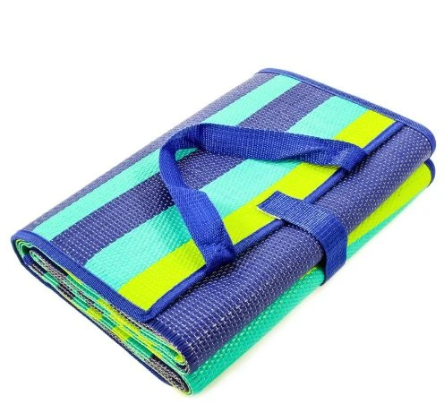 The Handy Mat is perfect to take with you wherever you go. Includes built-in handles and convenient pockets on both sides. Folds out to 60 in x78 in and folds to a compact 10.5 in x15 in . Perfect for picnics, beaches, Rving, and outings. Durable polypropylene.