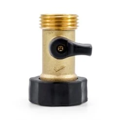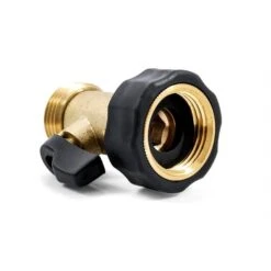 Camco’s Brass Water Connector Straight Valve has a solid brass housing with non-corrosive stainless steel quarter-turn shut-off valves. It features easy-grip valve handles and hose connection.