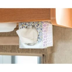 Camco RV Clear Pop-A-Tissue is designed to keep the facial tissues handy in wall or cabinet-mounted dispenser. It installs easily with screws or adhesive tape. This case can dispense upward or downward and fits most boutique tissue brands.