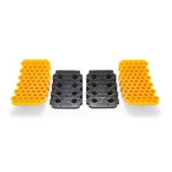 The Camco Curved Leveler is a simple way to level your vehicle by giving a tire up to 4-inches of extra lift. The honeycomb design makes the leveler lightweight but durable.The drive-on curved design allows you to only drive on to as much height as needed, then chock the leveler at the exact right height. The included chock has non-slip rubber grippers on the bottom. Set of two. Patented. Camco makes quality products for RVing, boating, camping, towing, tailgating, and grilling that help you take your passion for the outdoors to the next level.