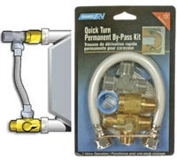 Save on antifreeze, winterize with this easily-installed water heater by-pass kit. Sturdy, brass backflow preventer and 100 percent shut-off valve by-passes the water heater with a single turn. Patent pending. Carded.