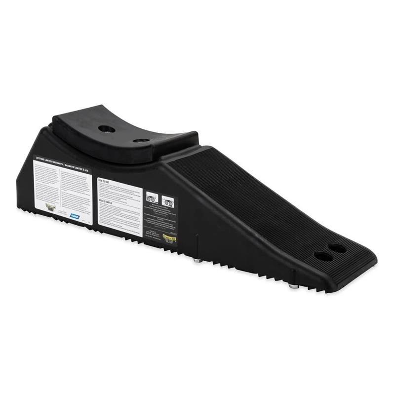 Trailer Aid Plus is the fast, safe and easy way to change a trailer tire on a tandem wheeled trailer. You pull the good tire up onto Trailer Aid Plus to raise the flat tire up 5.5″ for changing. Trailer Aid Plus has an additional 1″ lift more than the original Trailer Aid and is perfect for RV trailers and horse trailers. It is great for horse trailers so you do not have to remove your horses in order to change a flat tire. The extra 1″ lift is handy when performing routine maintenance on the trailer. Lifetime guarantee.